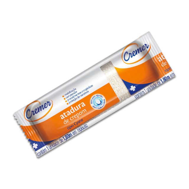 Observação: é a quantidade de fios por cm² que confere o poder de elasticidade. Possui um fio amarelo em diferenciação da Atadura de Crepom Cremer.