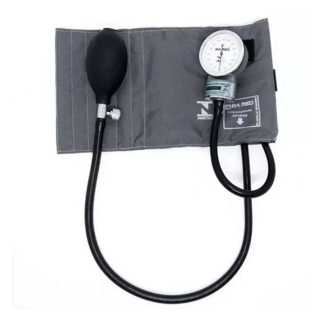 Braçadeira em tecido antialérgico de nylon tamanho G, fecho de contato com manguito preto.