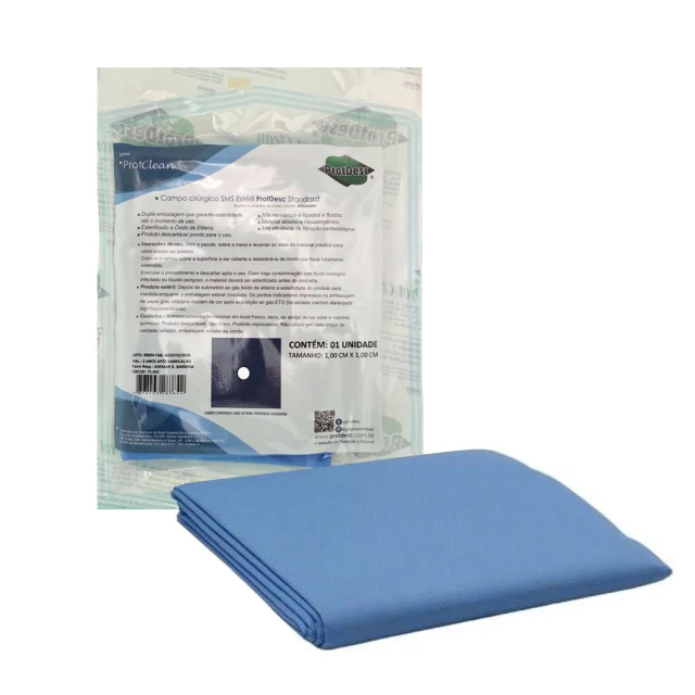 Campo cirúrgico descartável confeccionado em polipropileno trilaminado. Evita contaminação de respingos de sangue e/ou fluídos corpóreos em pacientes e superfícies. Demarca a área de cirurgia em pacientes.
