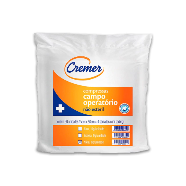 A Compressa Campo Opratório Cremer, é indicada em cirurgias em geral para absorver sangue e secreções líquidas ou em cirurgias cavitárias como anteparo atraumátio de vosceras e tecidos.