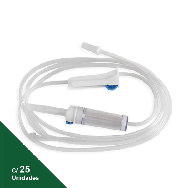 Equipo de infusão gravitacional macrogotas (20 gotas/ml), com conector Luer Slip, desenvolvido para administração de medicamentos e soluções pela via endovenosa.