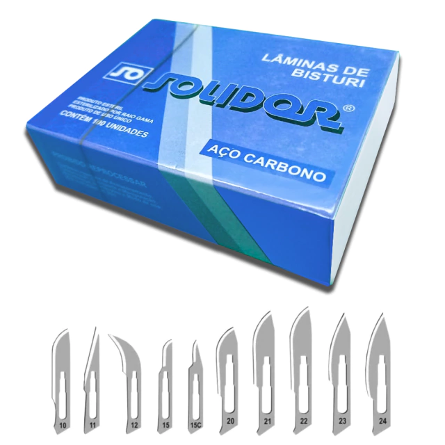 Utilizadas em conjunto com cabo para bisturi em procedimentos cirúrgicos que necessitam de corte. Lâmina afiada e cortante, confeccionada em aço carbono para uso único.