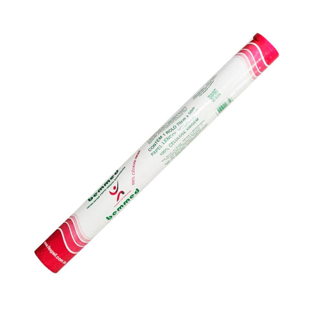 Papel lençol BEM MED, produzido com papel 100% celulose extra branco. Rolos embalados individualmente e identificados com data de fabricação, lote e validade do produto.