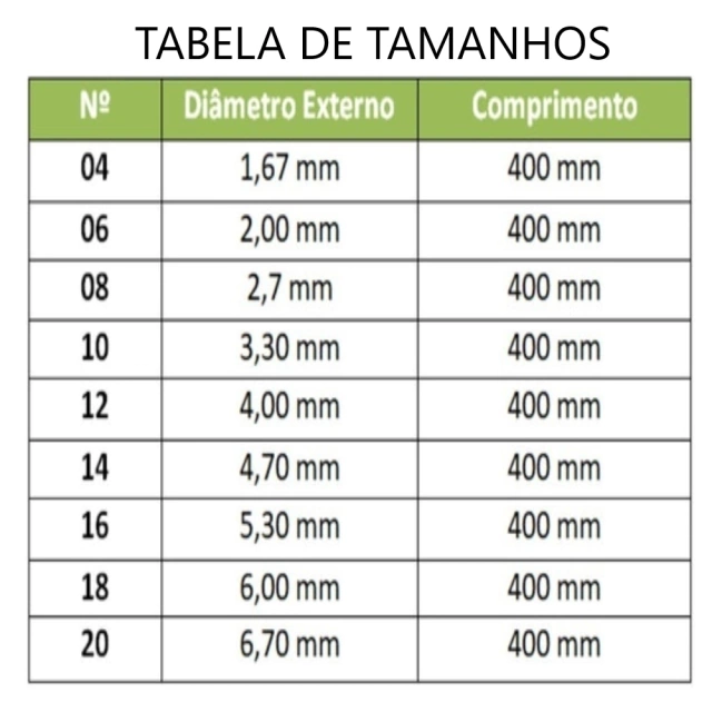 - Pacote com 20 unidades em embalagem plástica, esterilizado por radiação gama;